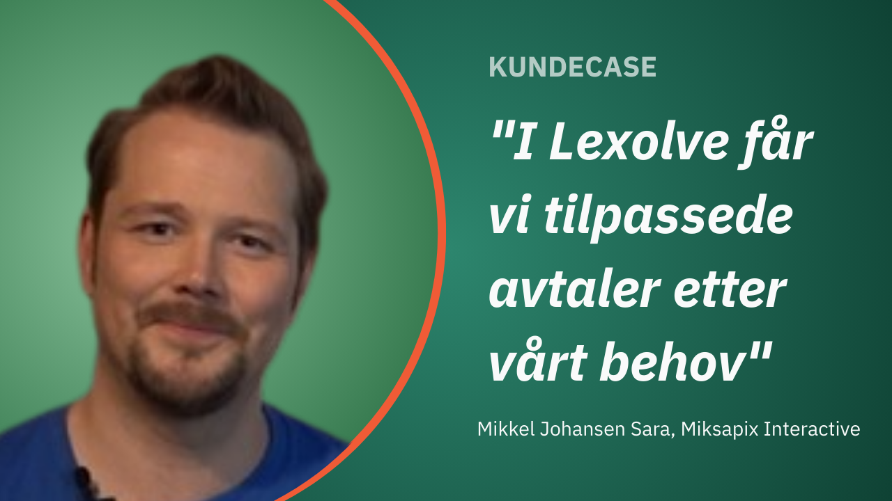 Samtidig har du jurister i ryggen du kan sparre med hvis det er punkter i avtalen man ønsker å få avklart, og det er veldig fint! Det er noe jeg og vi i Miksapix bruker mye. Jeg syns Lexolve er veldig bra og jeg anbefaler det gjerne til andre, avslutter han.